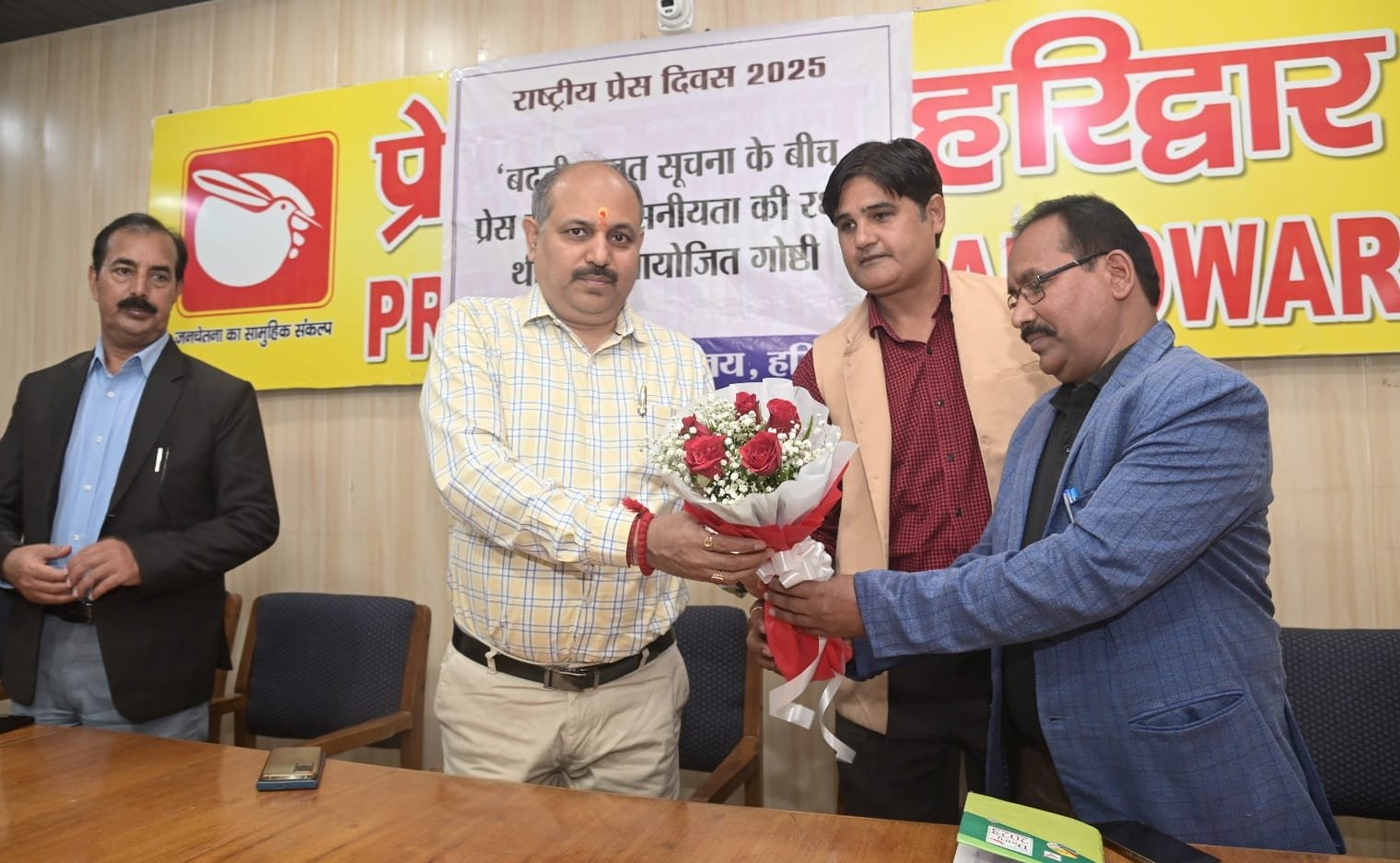 हरिद्वार। राष्ट्रीय प्रेस दिवस के अवसर पर प्रेस क्लब सभागार में बढ़ती गलत सूचना के बीच प्रेस की विश्वसनीयता की रक्षा करना विषय पर गोष्ठी का आयोजन किया गया।जिसमें मुख्य अतिथि मुख्य विकास अधिकारी ललित नारायण मिश्रा एवं विशिष्ट अतिथि अपर जिलाधिकारी पीआर चौहान कार्यक्रम ने शामिल हुए। इस अवसर पर प्रेस क्लब अध्यक्ष/महामंत्री एवं प्रभारी जिला सूचना अधिकारी ने अतिथियों को पुष्प गुच्छ भेंटकर स्वागत किया। इस अवसर पर मुख्य विकास अधिकारी ललित नारायण मिश्रा ने उपस्थित प्रेस प्रतिनिधियों को राष्ट्रीय प्रेस दिवस की बधाई इव शुभकामनाएं देते हुए कहा कि आज एआई के युग में अपने आप को अपडेट एवं सावधान रखने के आवश्यकता है तथा टेक्नोलॉजी के युग में भी अपडेट रहना जरूरी है। उन्होंने कहा कि आज सनसनी खेज खबर बनाने के लिए भाम्रक हेडलाइन तैयार की जा रही है,जिससे ही हेडलाइन से ही खबर की स्थिति का पता चल जाता है।उन्होंने कहा कि प्रेस और प्रशासन के बीच बेहतर संवाद बनाए रखने के लिए समय समय पर गोष्ठी एवं कार्यशाला का आयोजन किया जायेगा इस अवसर पर अपर जिलाधिकारी पीआर चौहान ने प्रेस प्रतिनिधियों को राष्ट्रीय प्रेस दिवस की शुभकामनाएं देते हुए कहा कि आज प्रेस की विश्वसनीयता को फर्जी खबरों, पैड न्यूज, पीत पत्रकारिता के माध्यम से सूचनाओं के प्रसार से कई चुनौतियों का सामना करना पड़ रहा है। फर्जी खबरों का प्रसार अक्सर से सोशल मीडिया के माध्यम से फैलता है तथ्यों को तोड़ मरोड़ के पेश करता है तथा आमजन मानस को गुमराह करता है इसके लिए यह जरूरी है कि हमें अपने आप को एक्टिव रखना जरूरी है।उन्होंने महिला सशक्तिकरण पर कहा की मातृशक्ति सभ्य एवं पढ़ी लिखी होगी तो दो परिवार एवं समाज आगे बढ़ेगा।उन्होंने कहा कि प्रशासन एवं प्रेस के बीच में संवाद निरंतर होता रहेगा,जिससे कि जो भी समस्याएं होगी संवाद करने से ही समाधान होगा। इस अवसर पर अध्यक्ष प्रेस क्लब ने कहा कि आज गलत सूचनाओं से समाज मको गुमराह किया जा रहा है,जिससे लोकतंत्र के एक स्तंभ के रूप में प्रेस की भूमिका कमजोर होती है।उन्होंने कहा कि प्रशासन द्वारा आयोजित कार्यक्रमों में प्रेस को सम्मान देते की आवश्यकता है,उन्होंने कहा कि प्रशासन इव प्रेस के बीच में संवाद निरंतर बना रहना चाहिए, जिससे कि शासन प्रशासन द्वारा संचालित जनकल्याणकारी योजनाओं की जानकारी आम जन मानस तक उपलब्ध हो सके तथा जनपद प्रगति के पथ पर निरंतर अग्रसर हो सके। इस अवसर पर वरिष्ठ पत्रकार आदेश त्यागी,रजनीकांत शुक्ला,त्रिलोकचंद भट्ट,राहुल वर्मा, विजेंद्र हर्ष,प्रशांत शर्मा ने बढ़ती गलत सूचना के बीच प्रेस की विश्वसनीयता की रक्षा करना के विषय पर विस्तार से अपने विचार रहे। इस अवसर पर प्रेस क्लब द्वा