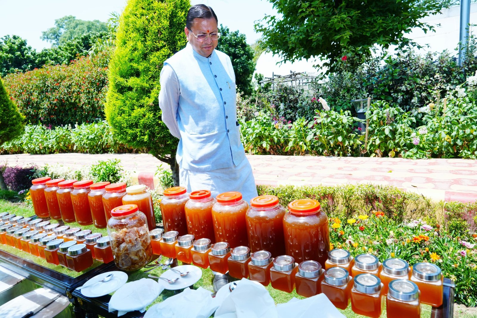 मुख्यमंत्री श्री पुष्कर सिंह धामी ने मुख्यमंत्री आवास परिसर में शहद निकालने की प्रक्रिया का अवलोकन किया
