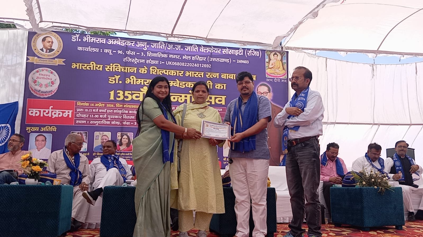 हरिद्वार।  डॉ. भीमराव अम्बेडकर 135वाँ जन्मोत्स के अवसर पर 14 अप्रैल 2026 को शिवालिक नगर,भेल हरिद्वार स्थित सामुदायिक केन्द्र में डॉ.भीमराव अम्बेडकर अनु. जाति/अ.ज. जाति वेलफेयर सोसाइटी (रजि.) द्वारा भव्य जन्मोत्सव समारोह का आयोजन किया गया। कार्यक्रम को लेकर क्षेत्र में खासा उत्साह देखा गया। कार्यक्रम के मुख्य अतिथि श्री नानक चन्द जी रहे, जबकि अतिविशिष्ट अतिथि के रूप में अरूणा भारती (पुलिस अधीक्षक, जीआरपी उत्तराखण्ड) शिरकत की। इसके साथ ही कई विशिष्ट अतिथि भी समारोह में शामिल होकर बाबा साहेब के विचारों पर प्रकाश डाला। कार्यक्रम की अध्यक्षता आर.यू. प्रसाद (पूर्व महाप्रबंधक, भेल) ने किया बुद्ध वंदना व अतिथि स्वागत से कार्यक्रम की शुरुआत हुई। इसके बाद बच्चों द्वारा सांस्कृतिक प्रस्तुतियां दी। अतिथियों के संबोधन के पश्चात प्रतिभावान बच्चों को सम्मानित किया गया तत्पश्चात स्नेहभोज का आयोजन हुआ। बालेश्वर सिंह (कांग्रेस जिला अध्यक्ष) ने कहा कि बाबा साहेब ने शिक्षा, संगठन और संघर्ष का जो मंत्र दिया, वह आज भी प्रासंगिक है और युवाओं को उससे प्रेरणा लेनी चाहिए। श्री सी.पी. सिंह ने कहा कि बाबा साहेब का जीवन संघर्ष और संविधान निर्माण का योगदान आज भी समाज के लिए प्रेरणा है। ऐसे आयोजनों से युवाओं में जागरूकता बढ़ती है। प्रियव्रत (पूर्व ब्लॉक प्रमुख) ने कहा कि डॉ. अम्बेडकर ने समाज के अंतिम व्यक्ति को न्याय दिलाने का जो सपना देखा था, उसे साकार करना हम सभी की जिम्मेदारी है। तीर्थपाल रवि (सामाजिक कार्यकर्ता) ने कहा कि बाबा साहेब के विचार आज भी सामाजिक समरसता और समानता का मार्ग दिखाते हैं।