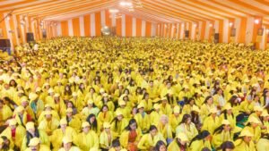 उन्होंने सदैव राष्ट्रवाद, संस्कृतिवाद व समन्वयवाद का प्रचार-प्रसार करने के साथ-साथ राष्ट्र को रोग, शोक मुक्त करने का विराट संकल्प धरातल पर उतारने का कार्य किया है। अपने उद्बोधन में उन्होंने यह भी अनुरोध किया कि पूर्ण गुरु श्री करौली शंकर महादेव जी को जूना अखाड़ा की आवाहन-अग्नि परंपरा का महामंडलेश्वर बनाया जाए, जिससे धर्म, संस्कृति के कार्यों को गतिशीलता प्राप्त होगी। अपने सम्बोधन में पूर्ण गुरु श्री करौली शंकर महादेव ने कहा कि हमें जीवन में सफलता, यश, वैभव व संस्कारों की प्राप्ति हेतु परिवार को छोड़ना नहीं है, संसार को त्यागना नहीं है। हमारे जीवन में परिवार व समाज से बढ़कर कोई नहीं। हर व्यक्ति को अपने कार्य में कुशल होकर ध्यान साधना के पथ पर चलकर रोग, शोक से मुक्ति पाने का प्रयास करना चाहिए। जब हम रोग, शोक से मुक्त होकर सशक्त बनेंगे तभी हमारे कुल का गौरव बढ़ेगा। पूर्ण गुरु करौली शंकर महादेव ने कार्यक्रम में उपस्थित असंख्य संतों, साधुओं और साधकों का स्नेहपूर्वक स्वागत किया और सभी को आध्यात्मिक उन्नति का आशीर्वाद देते हुए कहा कि मिश्री मठ के तत्वावधान में तीर्थनगरी की पावन धरा पर हुआ यह पंचदिवसीय पूर्णिमा महोत्सव बेहद सफल रहा है। इस महोत्सव का संदेश समूचे राष्ट्र में ऊर्जा का संचार करेगा। साधकों को जीवन में कष्टों से मुक्ति मिलने के साथ-साथ सफलता की उपलब्धि हासिल होगी। करौली शंकर महादेव ने कहा कि भगवान नारायण की छत्रछाया में पवित्र नगरी वृंदावन में अगला महोत्सव आयोजित किया जायेगा जिसकी तिथि शीघ्र घोषित की जाएगी। इस अवसर पर डॉ. उमेश सचान ने अतिथियों का स्वागत किया। महोत्सव का समापन भक्तिभाव से ओतप्रोत भजन ‘जय जय राधा रमन हरि बोल’ के सामूहिक गान के साथ हुआ, जिसमें श्रद्धालुओं ने उत्साह और आभार के साथ सहभागिता की।