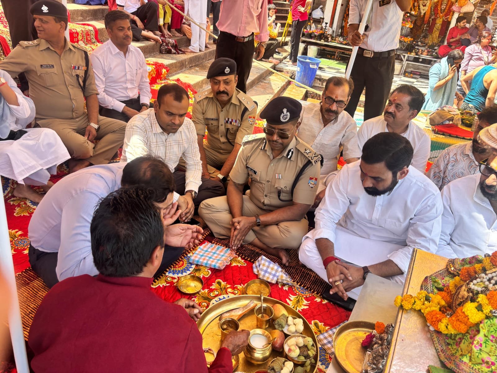 हरिद्वार। चारधाम यात्रा शुरू होने से एक दिन पूर्व आयुक्त गढ़वाल मंडल विनय शंकर पांडे,आईजी गढ़वाल राजीव स्वरूप, जिलाधिकारी मयूर दीक्षित एवं वरिष्ठ पुलिस अधीक्षक नवनीत सिंह भुल्लर ने हर की पैड़ी में मां गंगा की पूजा अर्चना कर चार धाम यात्रा को निर्विघ्न,सुरक्षित एवं कुशलता पूर्वक संपन्न कराने के लिए मां गंगा से प्रार्थना की।