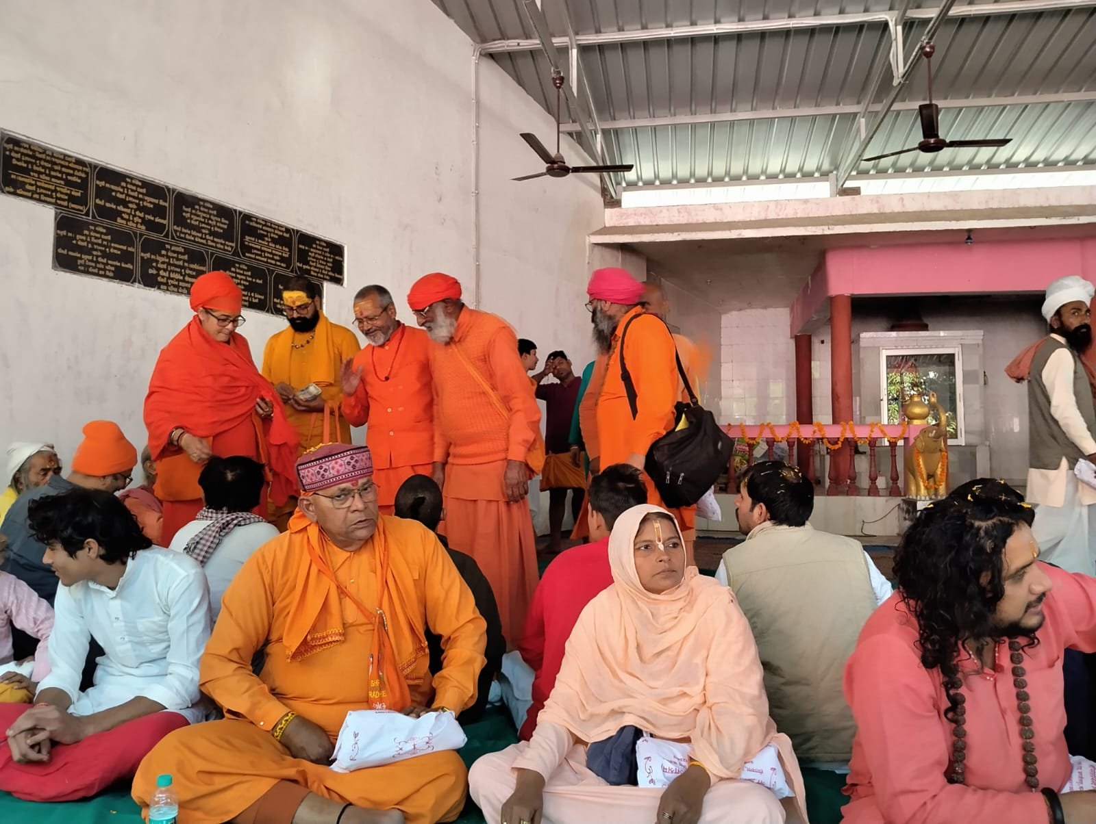 सुबह 10 बजे से शुरू हुए इस पवित्र आयोजन में संतों और साधुओं ने “ॐ नमो नारायण”, “हर हर महादेव” और देवों के जयघोष लगाए, जिससे पूरा अखाड़ा धर्म-उत्साह और भक्ति भाव से गूंज उठा।