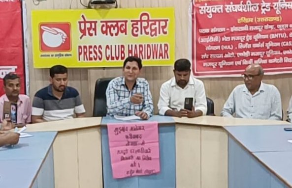 प्रेस वार्ता में इंकलाबी मजदूर केन्द्र के हरिद्वार प्रभारी पंकज कुमार, संयुक्त संघर्षशील ट्रेड यूनियन मोर्चा के संयोजक व फूड्स श्रमिक यूनियन के महामंत्री गोविंद सिंह, कोषाध्यक्ष देवेंद्र भेल मजदूर ट्रेड यूनियन के अध्यक्ष राजकिशोर, महामंत्री अवधेश कुमार, किर्बी श्रमिक कमेटी के प्रधान कृष्ण मुरारी, एवरेडी मजदूर यूनियन के महामंत्री अनिल कुमार, देव भूमि श्रमिक संगठन हिन्दूस्तान यूनिलीवर के सुरेश राम व प्रगतिशील महिला एकता केन्द्र की हरिद्वार प्रभारी नीता उपस्तिथ रहे।